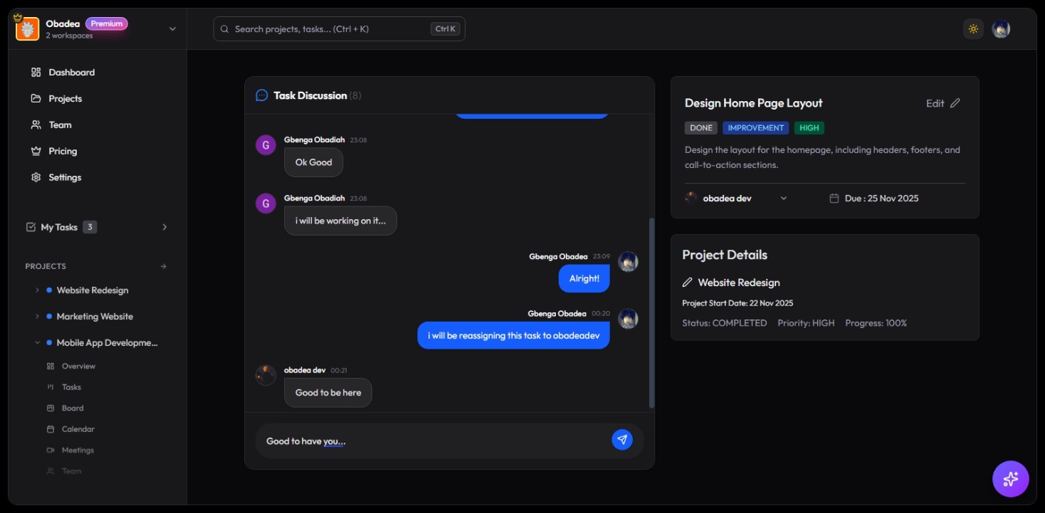 Simply sign up, create your workspace, and invite your team members. You can start creating projects and tasks immediately.