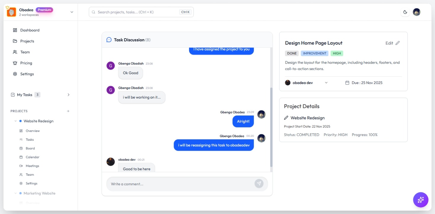 Stay connected with your team through instant updates powered by WebSocket technology. Every change, comment, and update syncs across all devices in real-time, keeping everyone aligned.